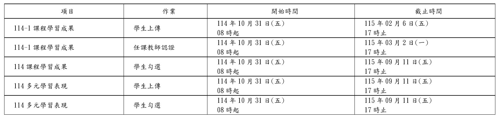 | 法源:高級中等學校學生學習歷程檔案作業要點 | ||||||||||||||||||||||||